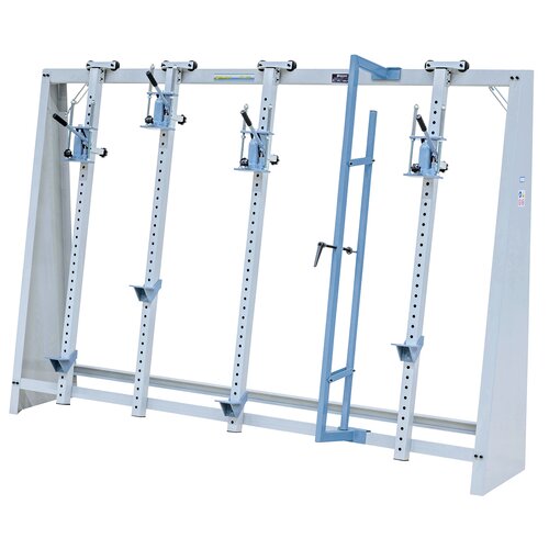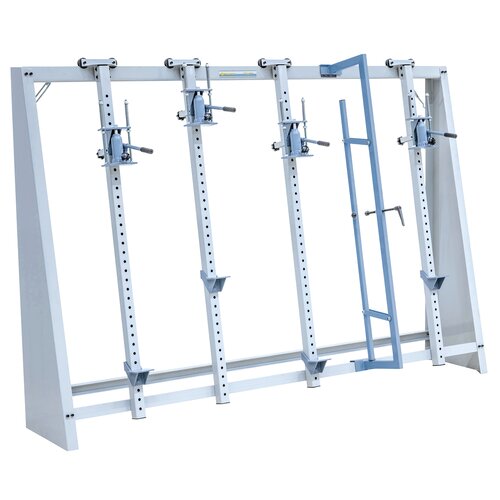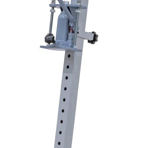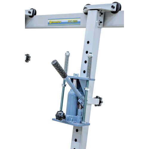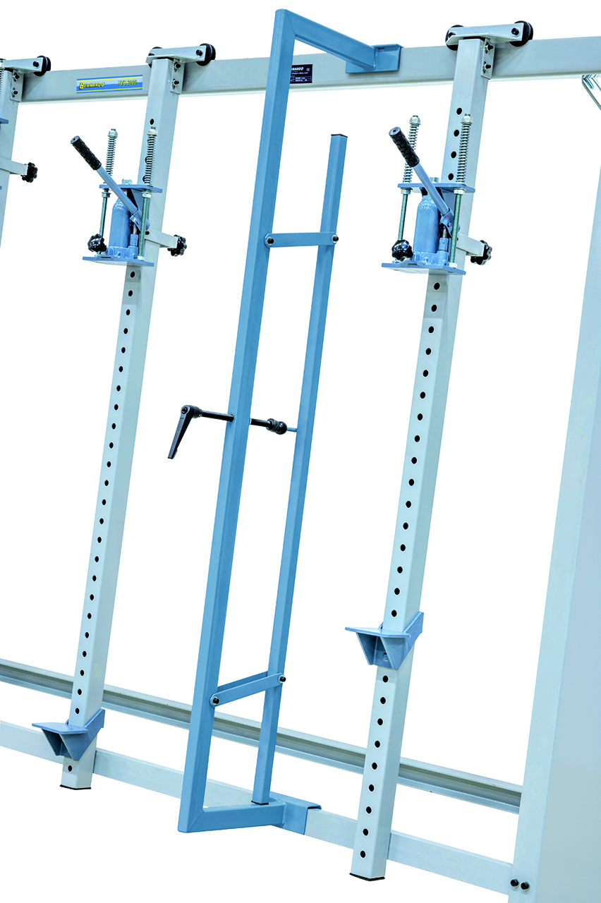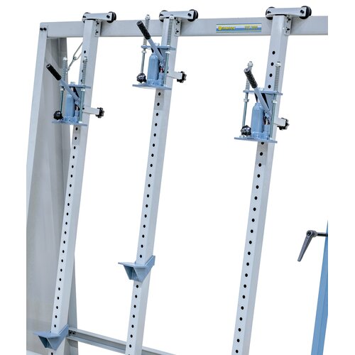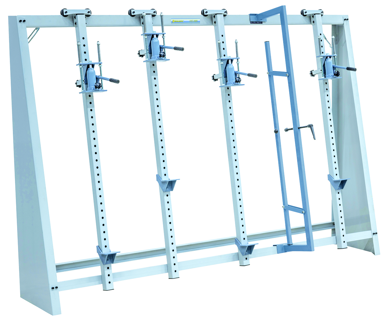 - 4 adjustable pressure bars, each with a vertical hand-operated hydraulic cylinder and counter-block