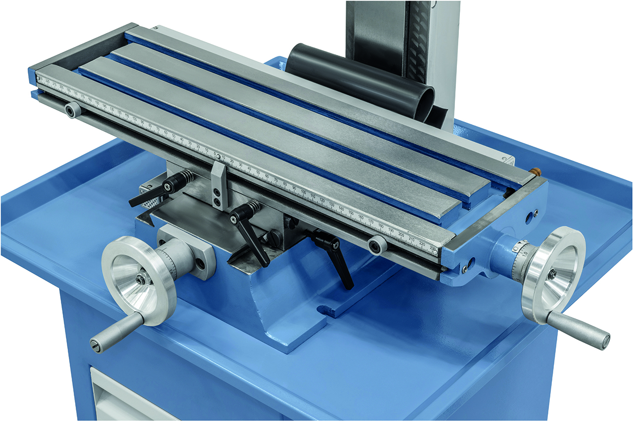 - Schwalbenschwanzführung für x-, y- und z-Achse, nachstellbar über Keilleisten