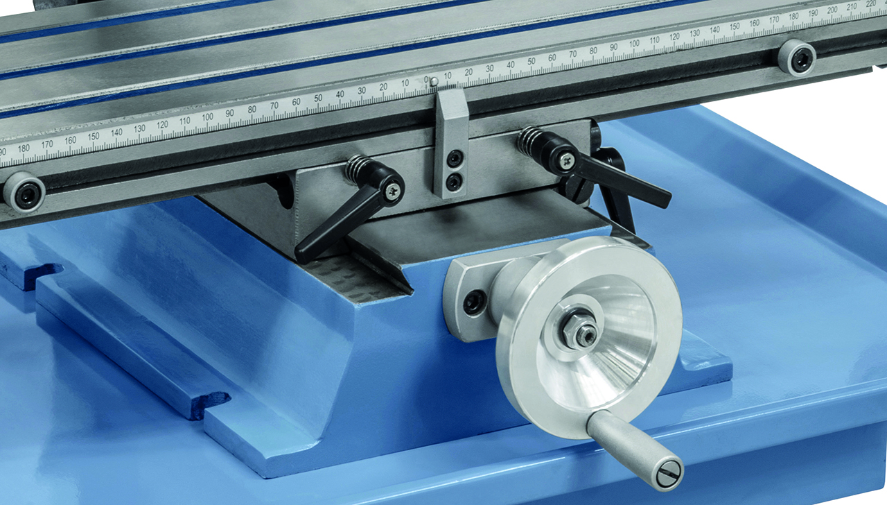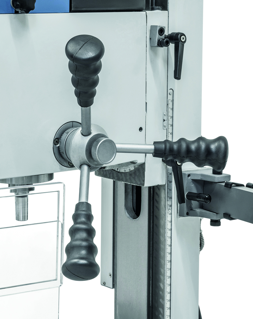 - Pinolenverstellung mittels Handgriff, Feinzustellung mittels Handrad