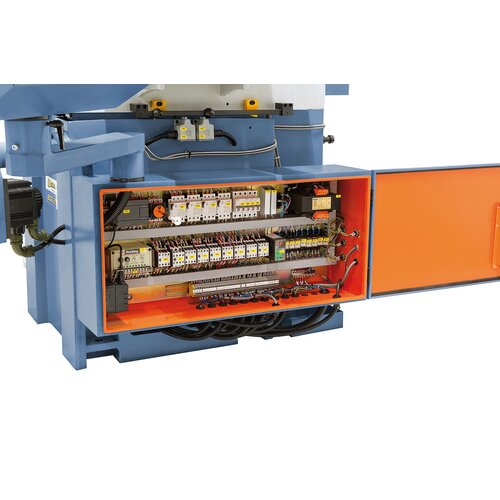 - Zustellung mittels Eilgang auf die Werkstückhöhe, einstellbare Schlicht- und Ausfeuerhübe, automatisches Abheben nach Programmende