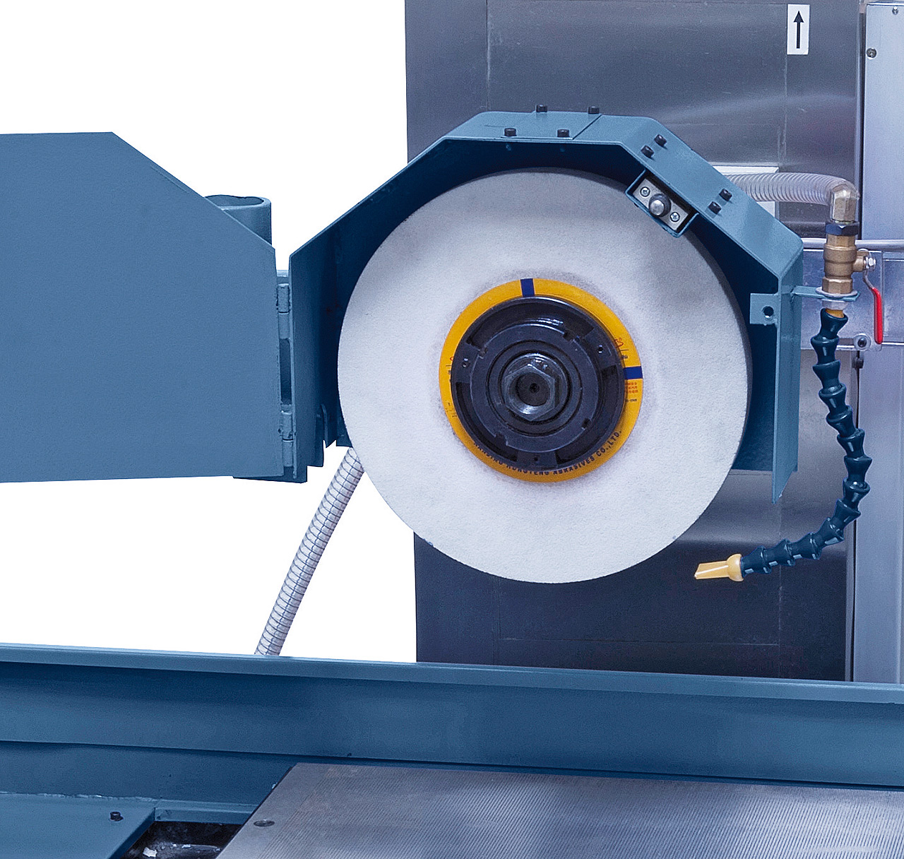 - Zustellung mittels Eilgang auf die Werkstückhöhe, einstellbare Schlicht- und Ausfeuerhübe, automatisches Abheben nach Programmende