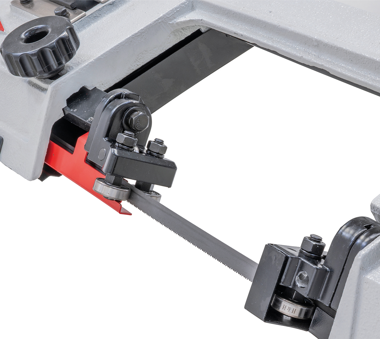 - Sägebügel aus Grauguss garantiert vibrationsfreien Lauf