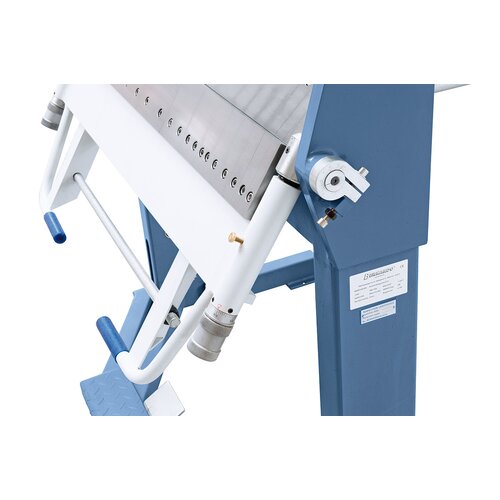 - Klemmung mittels Fußpedal, Hände bleiben frei zum optimalen Positionieren des Bleches