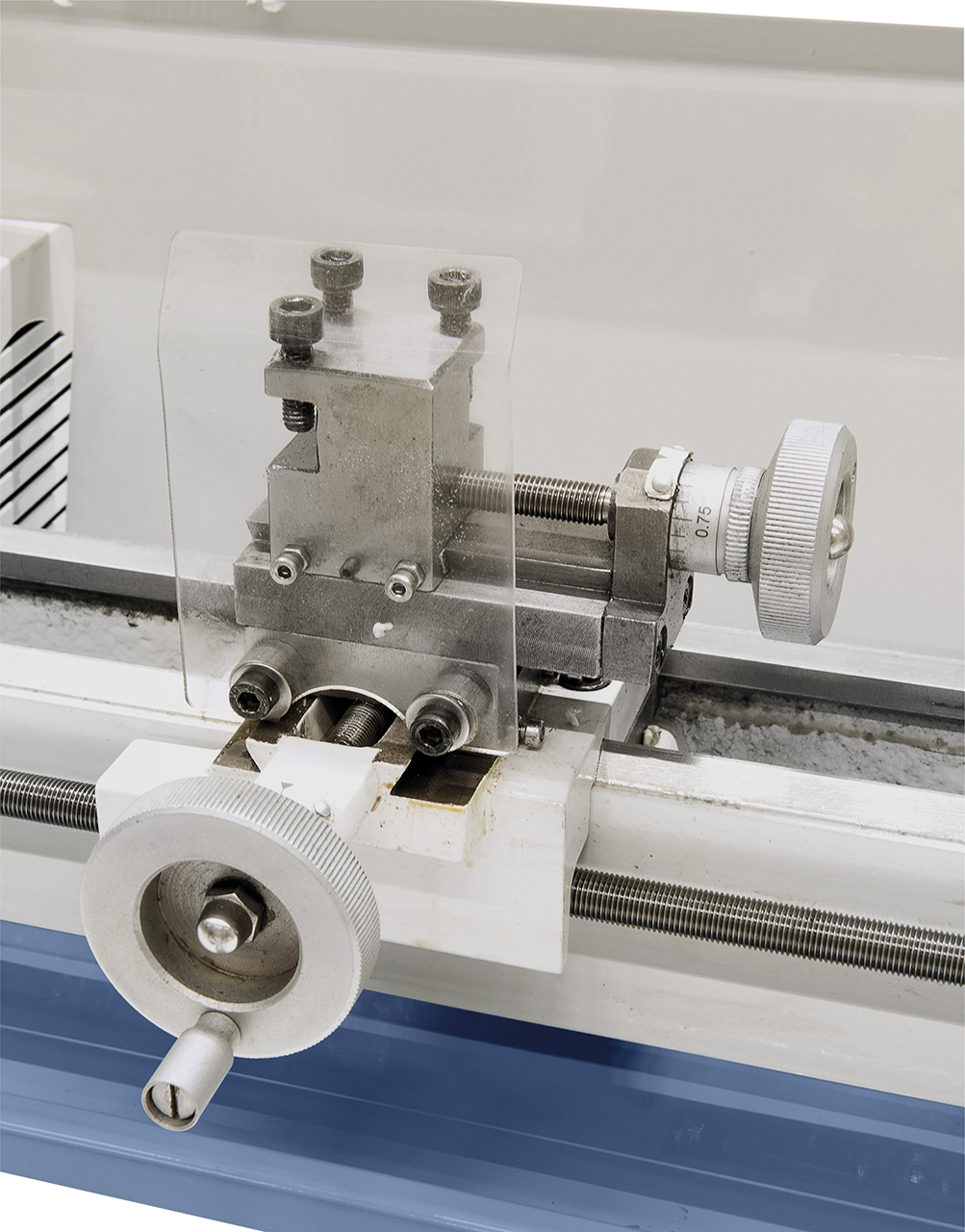 - Handräder mit einstellbarer Feinskalierung (0,05 / 0,01 mm)