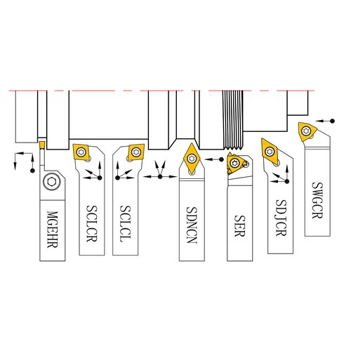 7 pcs. multipurpose indexable carbide turning tool set, Tin-coated, 10 mm, set M