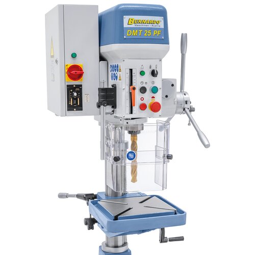 Art. No.: 01-11866The bench drilling machine DMT 25 PF is equipped with a thread-cutting device and an automatic spindle feed as standard. The compact construction makes this model highly suitable for general use in workshops.
