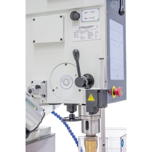 Art. No.: 01-1346XL0The KBM 65 NC Vario box-column drilling press comes with stepless speed setting, allowing ideal adjustment of cutting speed to each workpiece. The special features of this model are the operation via a large touchscreen and the spindle feed by a servo motor.