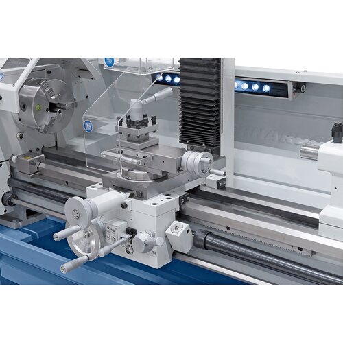 • Strongly reinforced machine bed featuring induction-hardened, polished guide