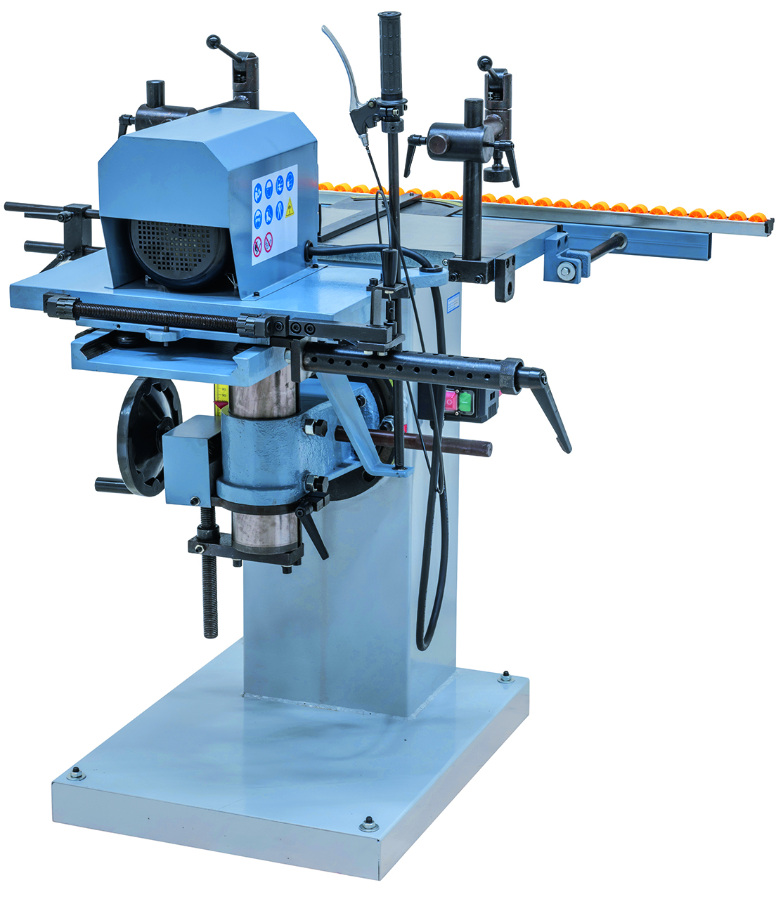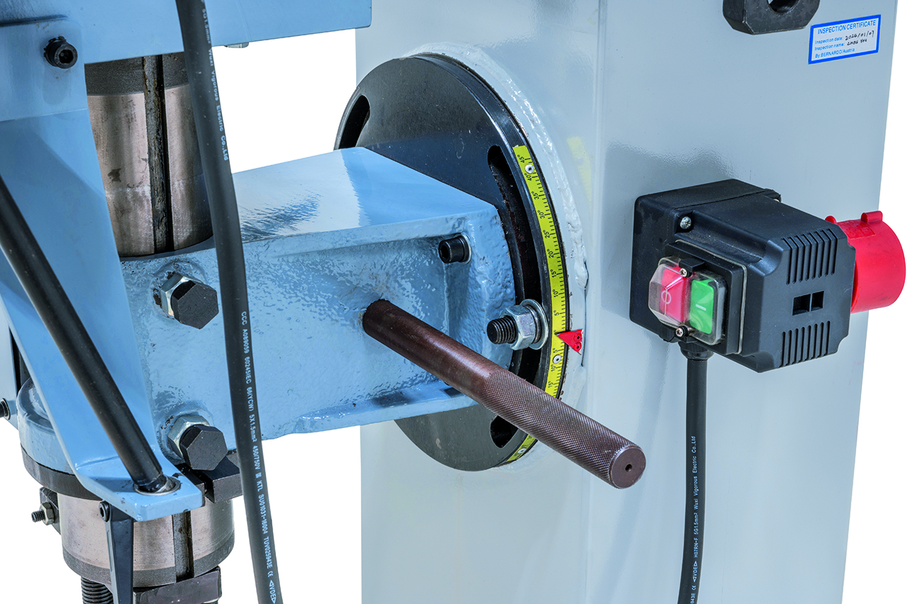 - Handwheel allows for convenient height adjustment of drill unit