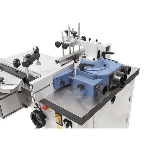 - Complete with moulding fence featuring a dust port (diameter 100 mm) and sanding sleeve (diameter 75 mm)