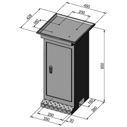 - Serially with storage shelf, lockable door and chip tray