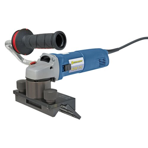 Art. No.: 05-1648The chamfering machine KFM 175 is suitable for chamfering, preparation of bevelled edges and economic preparation of welding seams of straight edges. The rollers integrated in the guide rail ensure a constant feed during work.