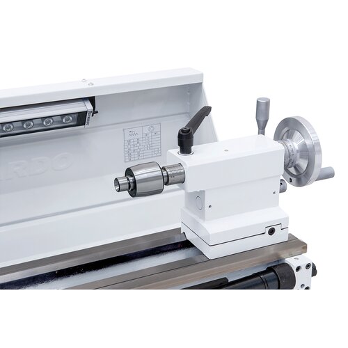 Art. No.: 03-1156Le tour Profi 650 G est équipé en série d‘une broche à fielter pour le taraudage ou pour l‘avance plane et longtudinale automatique. Un réglage rapide des vitesses de rotation est rendu possible par la transmission à 12 rapports - pas de changement de courroie trapézoïdale nécessaire. Cette machine garantit une haute douceur de fonctionnement et un travail précis par sa construction compacte et son poids propre élevé.