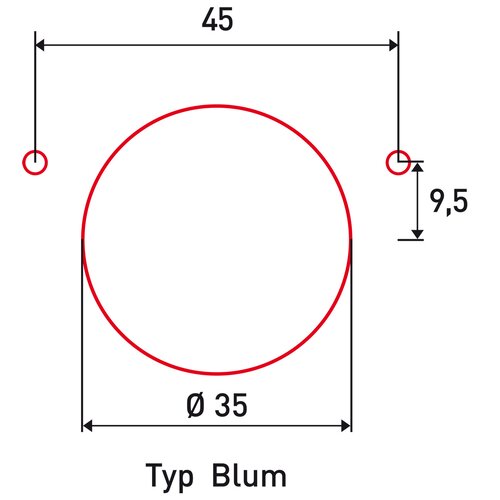 Bohrkopf 45/9,5 per Scharnier tipo Blum, con Aufnahme per Bohrmaschinen