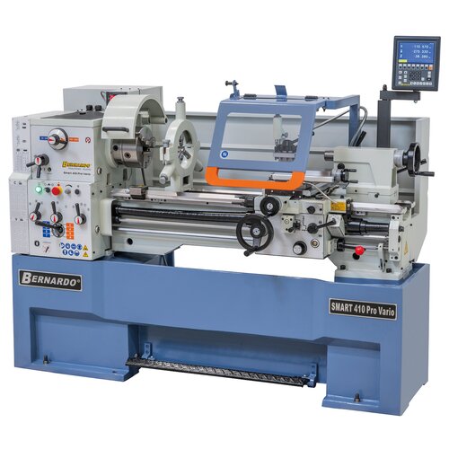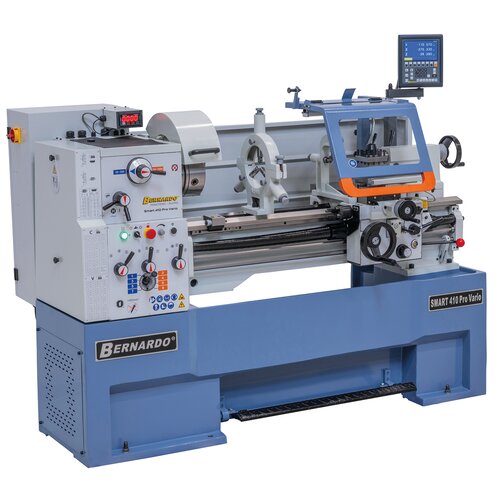 Art. No.: 03-1301XL0De universele draaibank Smart 410 Pro Vario is geschikt voor uitvoering van lichte en middelzware draaiwerkzaamheden. Reeds in zijn standaarduitrusting bezit hij alle belangrijke toebehoren (3-klauw, brillen, wisselwielen, 3-assige positieaanduiding,....) waardoor deze machine universeel inzetbaar is. Verder is dit model uitgerust met een traploos regelbaar spindeltoerental tot 3000 omw./min, waardoor het toerental optimaal aan het werkstuk en de toevoersnelheid kan worden aangepast.