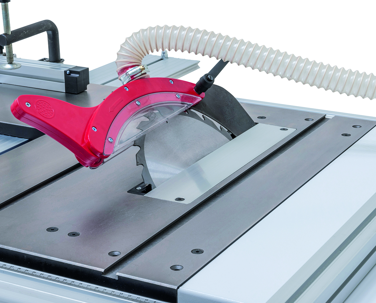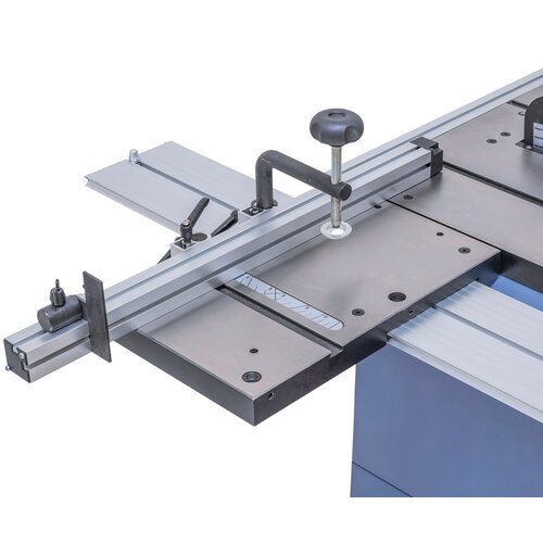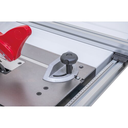 - Mitre fence either usable on right or left of sawblade, suitable for angle cuts up to 45°
