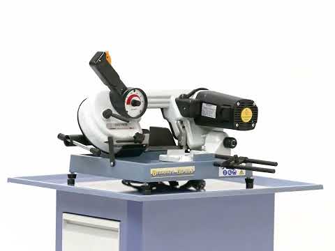 Art. No.: 04-1020Fierăstrăul mic cu bandă metalică EBS 100 B cu o tăiere oblică pe o latură. Viteza benzii reglată electronic face maşina utilizabilă pentru multe materiale.